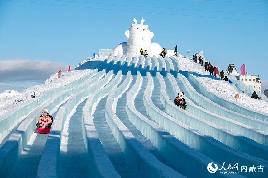 孩子们在冰雪那达慕上体验滑冰梯。吕昊俊摄
