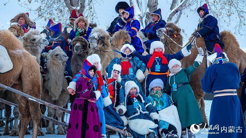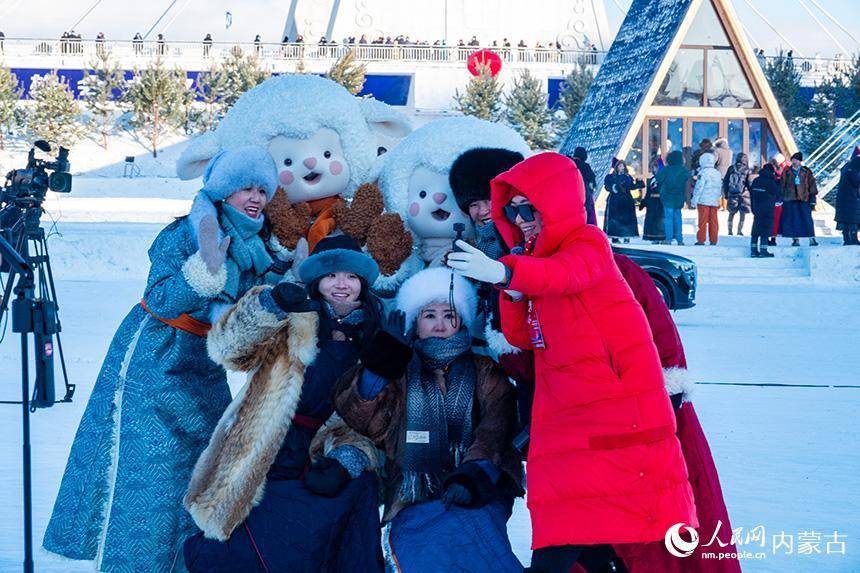 演员们在冰雪那达慕开幕式结束后合影。吕昊俊摄
