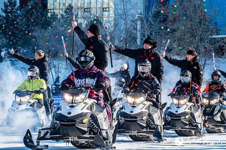 冰雪那达慕开幕仪式上,摩托车队入场。吕昊俊摄