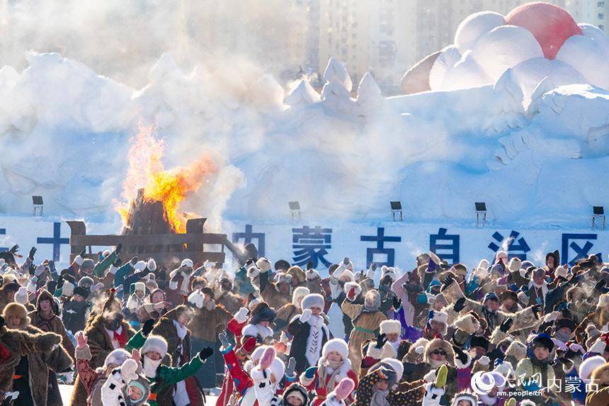 牧民群众在冰雪那达慕开幕式上进行民俗表演。吕昊俊摄12月21日,第二十一届内蒙古自治区冰雪那达慕在呼伦贝尔市海拉尔区伊敏河文化休闲长廊拉开帷幕,吸引众多中外游客和市民前来参加。