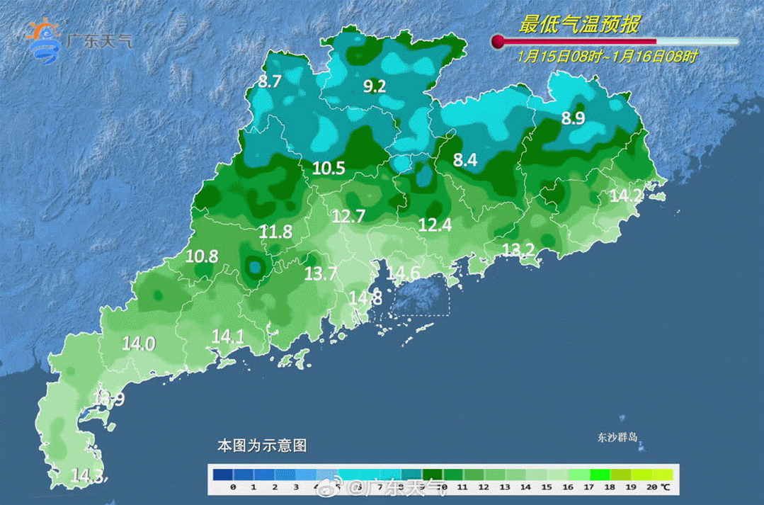 ● 18日,粤北、珠三角多云间阴天,局部有零星小雨,其余市县多云。最低气温:河源、梅州、粤东市县11℃~14℃,雷州半岛18℃~20℃,其余市县14℃~17℃。