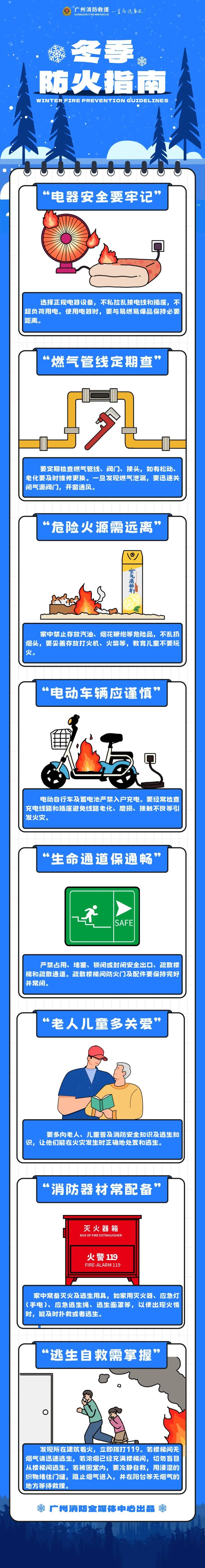 请广大市民群众进山不带火种,禁止在林区吸烟、燃放烟花爆竹、焚香烧纸、焗蛇鼠、烧黄蜂等。冬春季火灾高发,请做好居家火灾防范措施:煤气管道、电气线路常检查,安全用火用电;严禁电动车及电池进楼入户充电;牢记“三清三关”(常清走道阳台厨房,人离关电源火源气源),时刻保持疏散通道畅通。