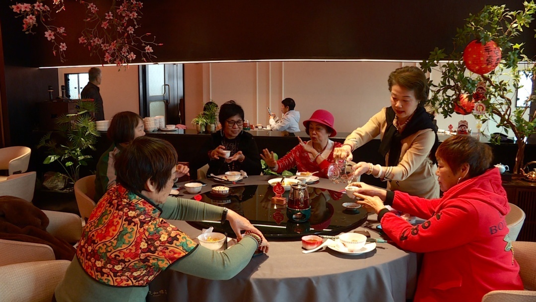 1月21日,在鹤龙街惠如楼大厅,麦女士和朋友在细细品尝早茶。作为惠如楼的前点心师,她对这里的手工点心情有独钟,专程从越秀区过来品尝。“我已经在这里订了年夜饭,虽然路途有点远,但这里的出品有保证,价格也公道。”麦女士说。